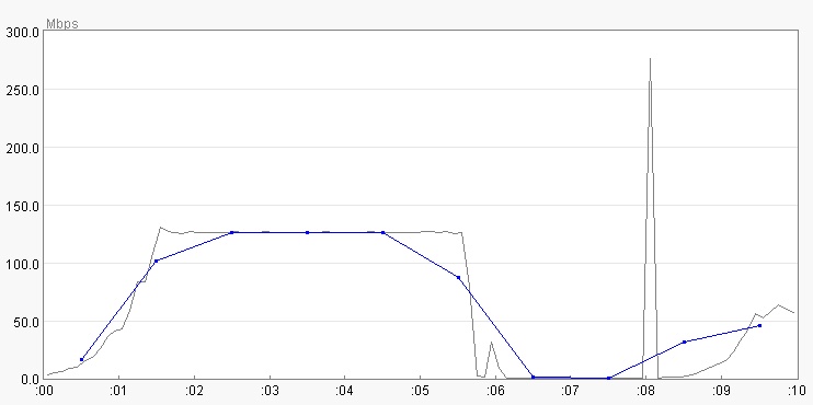 (where I normally see over 120Mbps speeds). Each drop / red circle is a