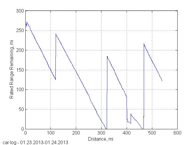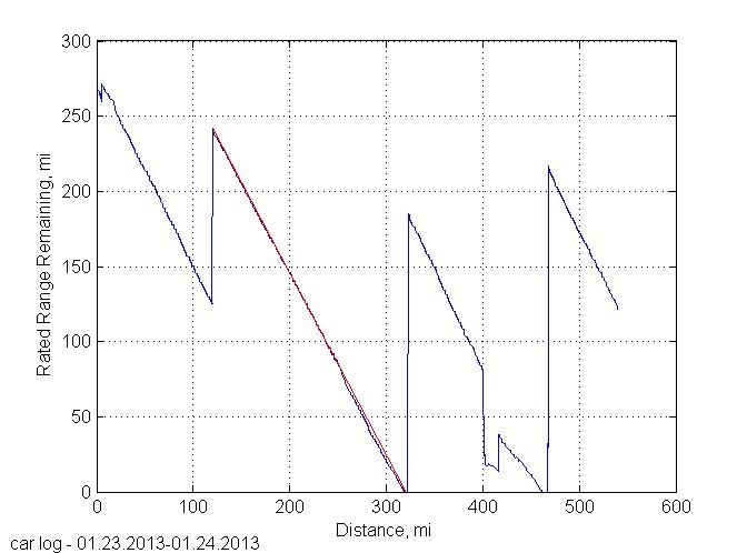 cold temperatures, heater usage, etc, resulting in a "mile range" displayed