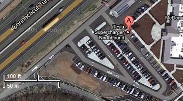 Tesla Supercharger at the Travel plaza in Newark, DE and the Tesla