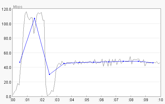 single lost packet varies, but a single packet is dropped, causing the download speed