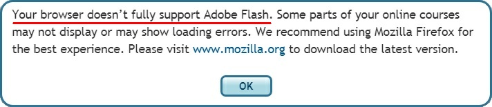 "fully supports" Adobe Flash in a popup (seen below). But is that the whole truth?
