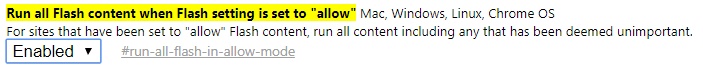 - Visit the "chrome://flags/#run-all-flash-in-allow-mode" URL. Change setting to "Enabled"